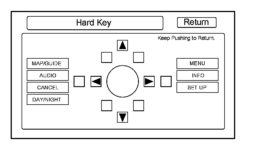 Start the vehicle, and at the disclaimer screen use the navigation display hard buttons as described below: