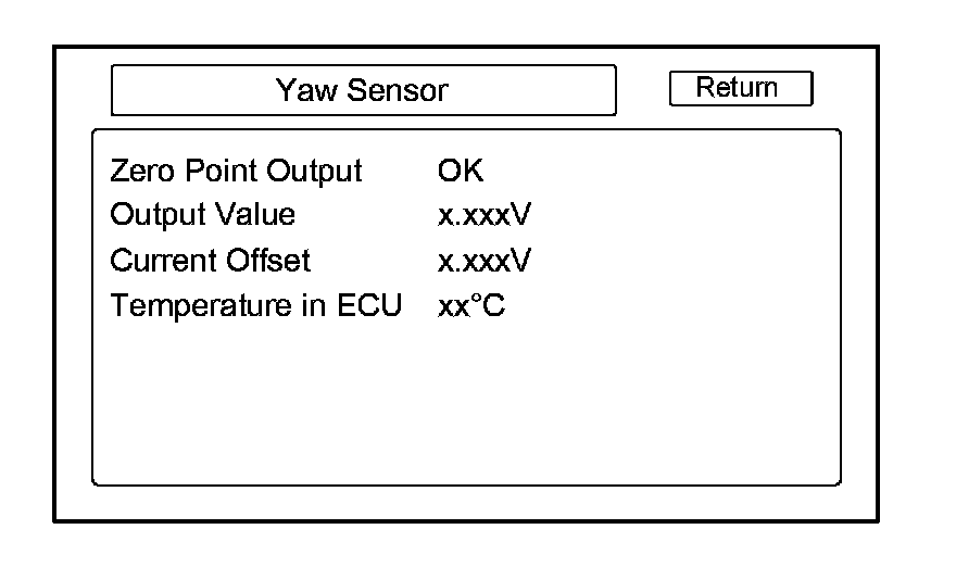 This screen gives a quick test of the yaw sensor functionality based on the two voltages Sensor and Offset. For more information see the Yaw Rate diagnosis.