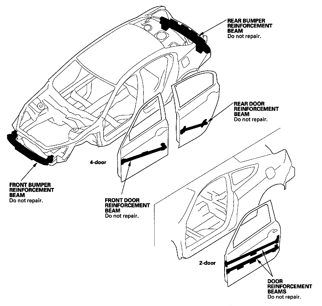 For this reason, the door and bumper reinforcement beams should NEVER be replaced; they should be replaced if they are damaged.