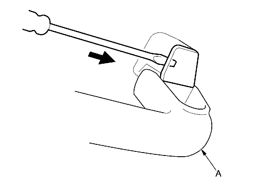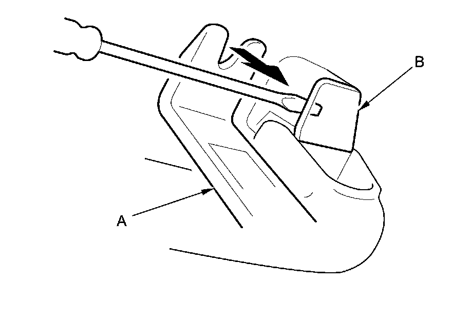 2. Pull on the small flat-tip screwdriver with the appropriate trim tool (A), and remove the cap (B).