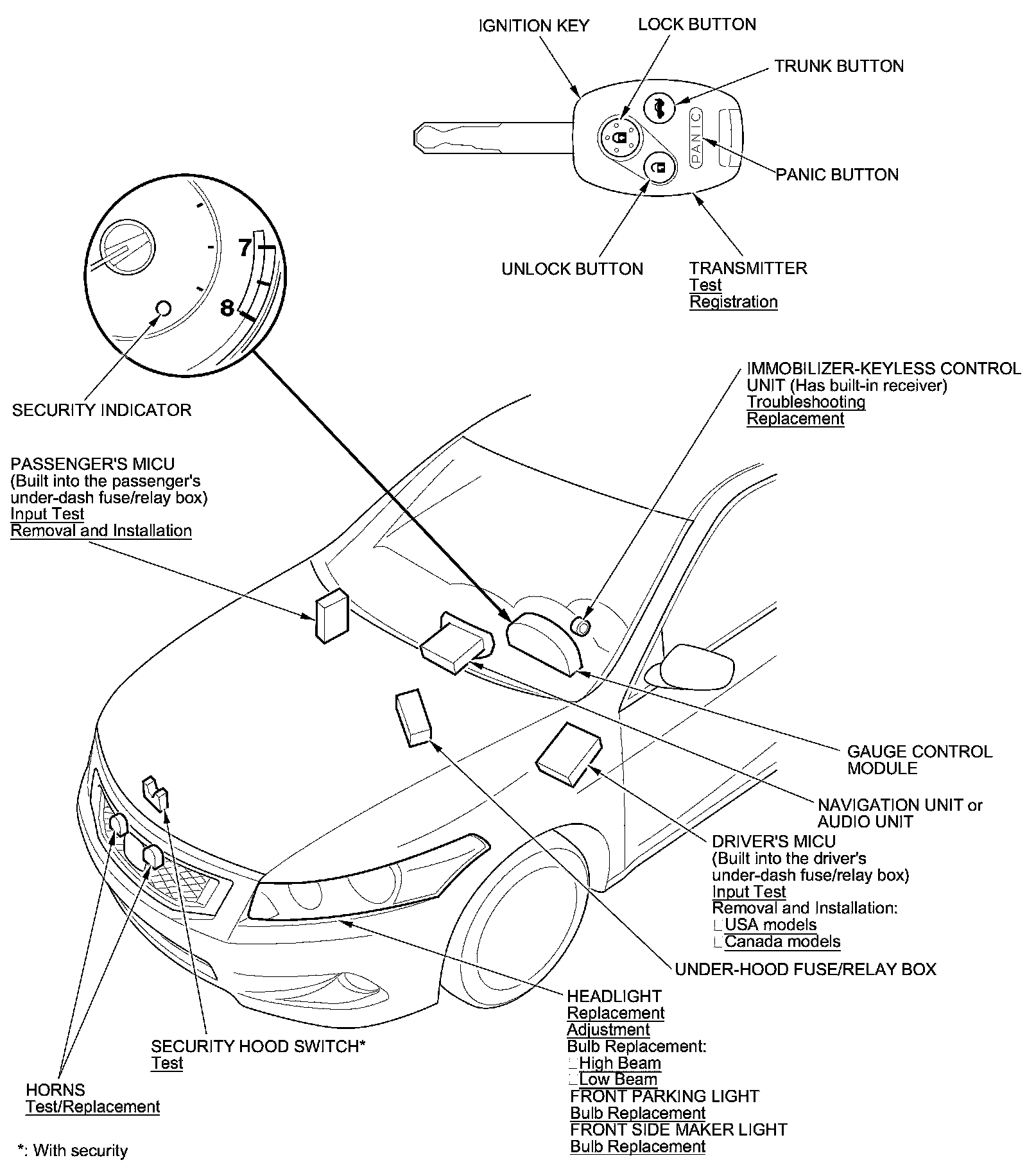 Keyless/Power Door Locks/Security System Component Location Index