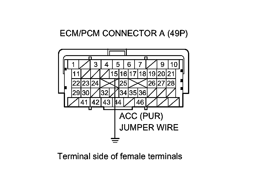 13. Momentarily connect ECM/PCM connector terminal A15 to body ground with a jumper wire several times.