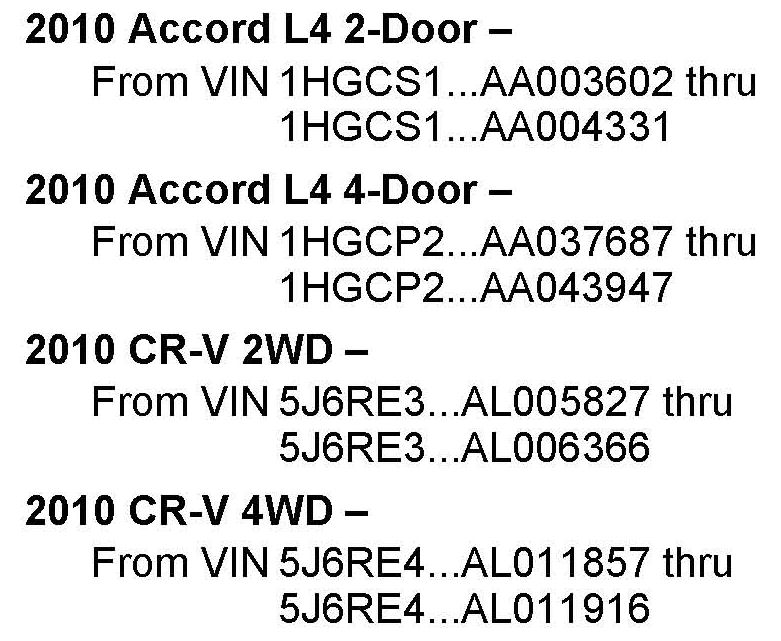 ^ For a complete list of the wire terminals and circuits in the C101 junction connector, refer to Connector Terminal View 264 in the 2010 Accord ETM, or Connector Terminal View 279 in the 2010 CR-V ETM.