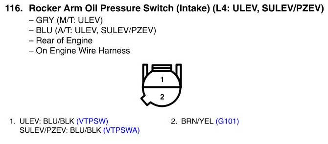 Rocker Arm Oil Pressure Switch (Intake) Connector View (With ULEV, PZEV)