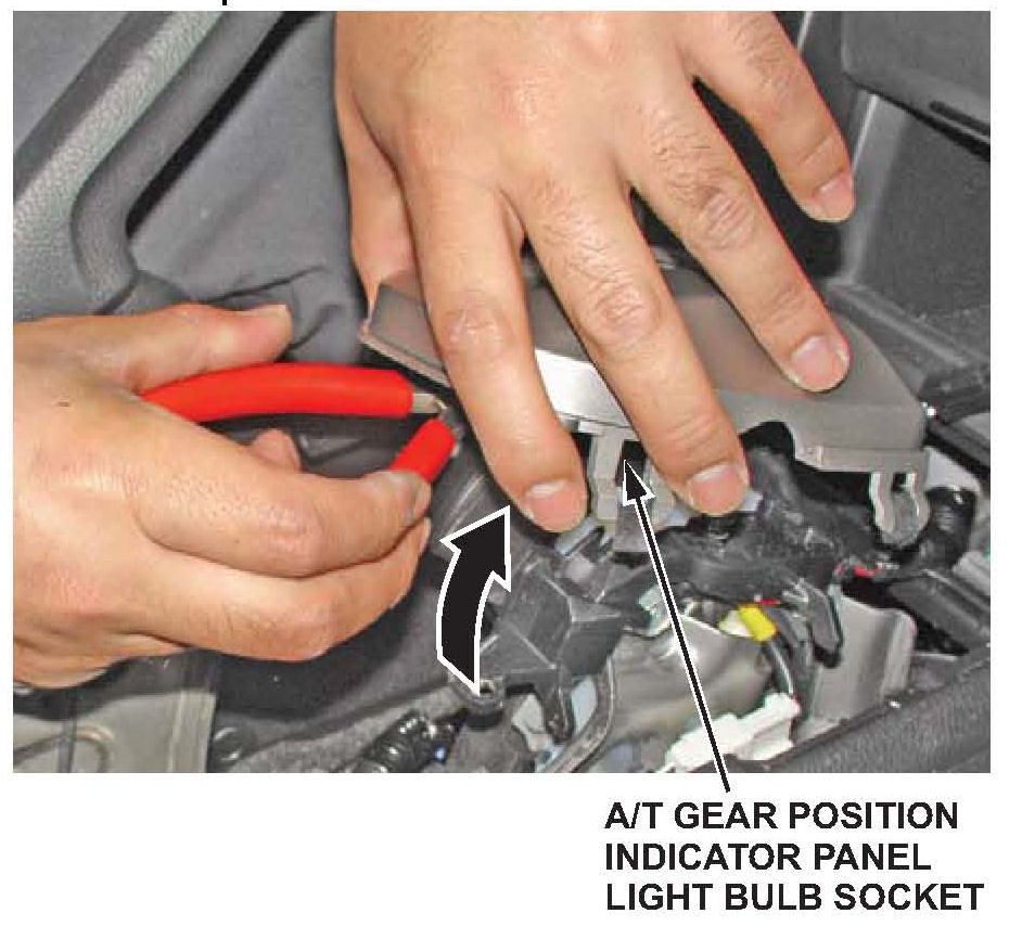 8. Type B shift lever: Remove the A/T gear position indicator panel light bulb socket, then remove the indicator panel from the base.