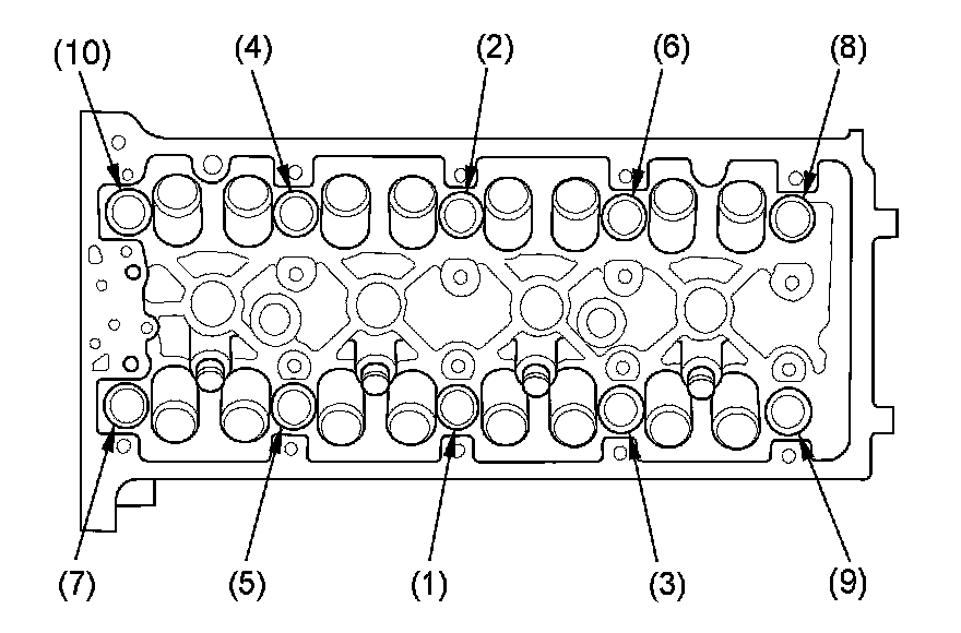 If either diameter is less than 10.6 mm (0.42 in), replace the cylinder head bolt.