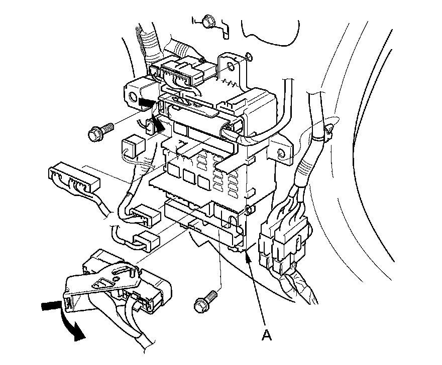 3. Disconnect the connectors from the passenger's under-dash fuse/relay box (A).