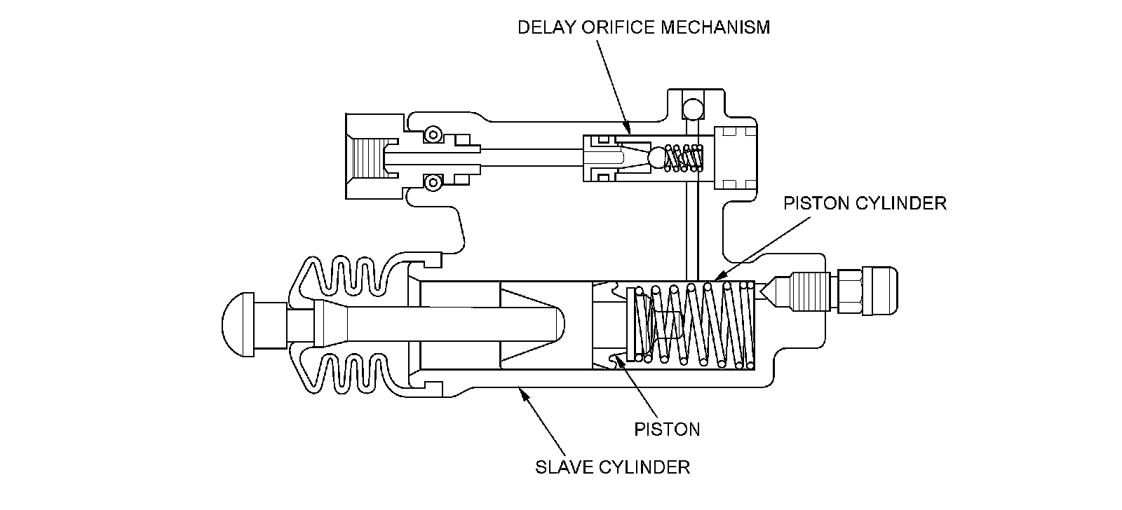 The delay orifice mechanism improves clutch operation by delaying the slave cylinder release speed when the clutch pedal is suddenly released. The delay orifice mechanism is built into the slave cylinder.