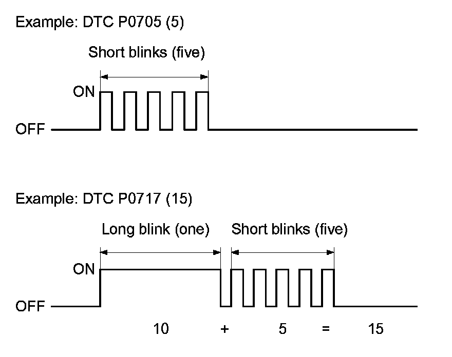 3. Select SCS mode, then observe the D indicator in the gauge control module. Codes 1 through 9 are indicated by individual short blinks. Code 10 and above are indicated by a series of long and short blinks. One long blink equals 10 short blinks. Add the long and short blinks together to determine the code.