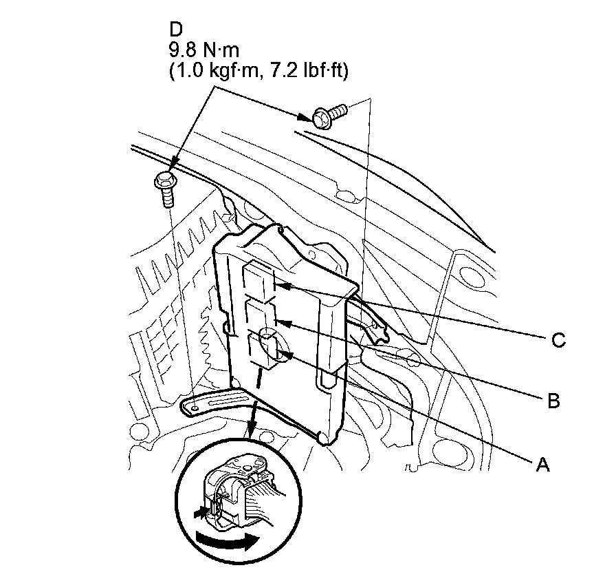 When the PCM senses an abnormality in the input or output system, the D indicator (A) in the gauge control module (B) will usually blink.