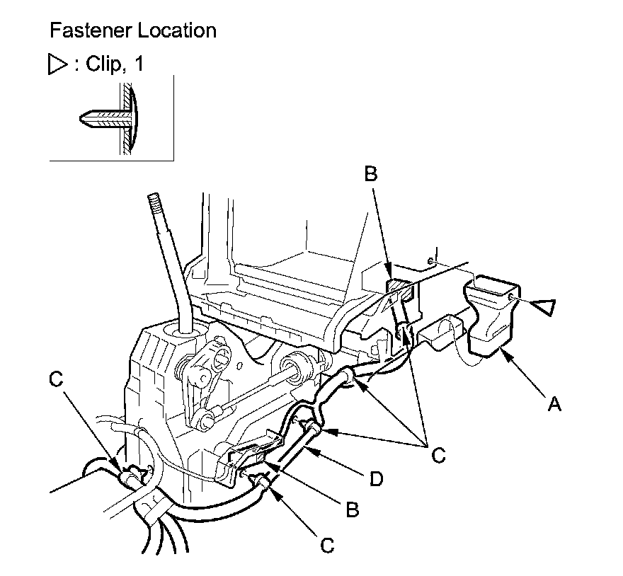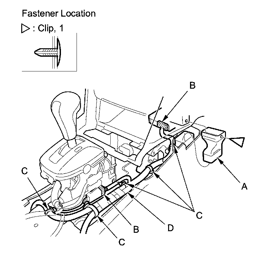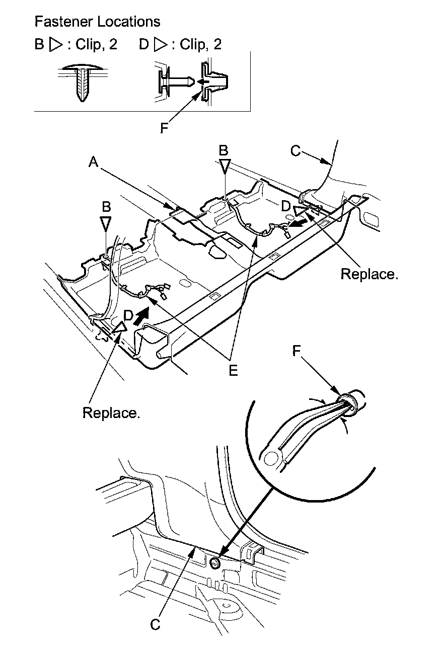 NOTE: Replace the clip D and the grommet F as an assembly with a new one.