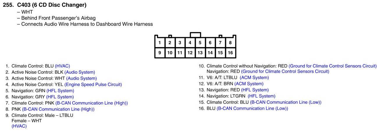 View 255 - C403 Connector View (6 CD Disc Changer)