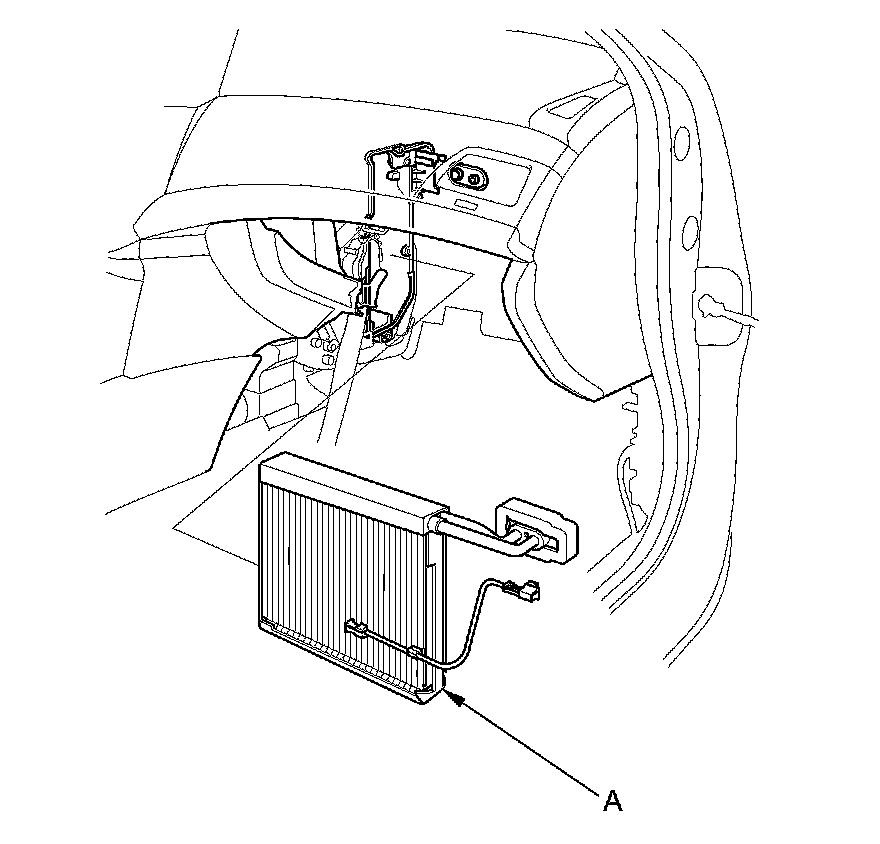 7. Carefully pull out the evaporator core (A) without bending the lines.