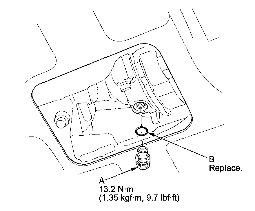 3. Remove the relief valve (A) and the O-ring (B). Plug the opening to keep moisture and foreign material from entering the system, and the A/C compressor oil from running out.