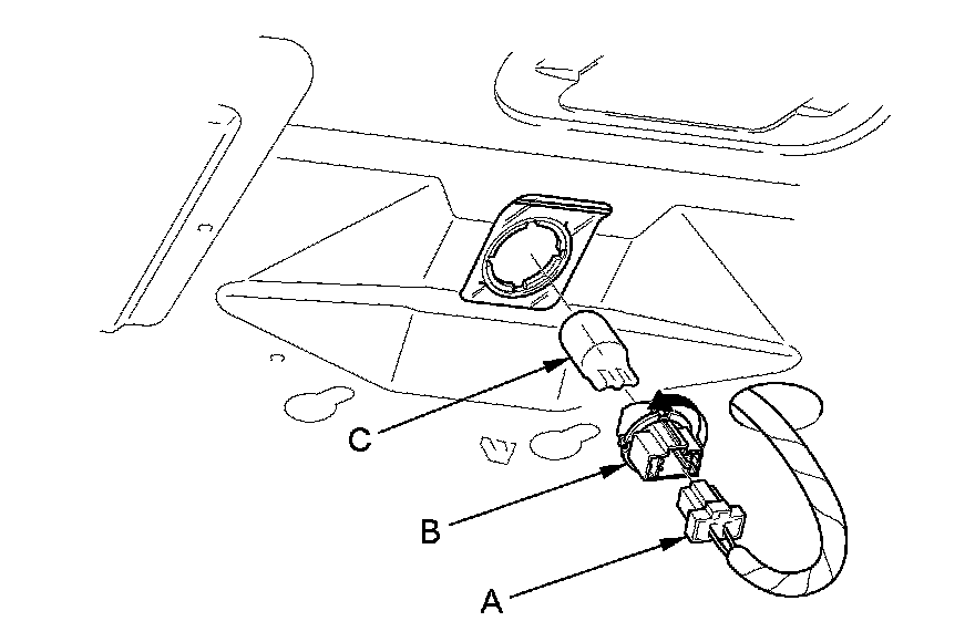 3. Turn the bulb socket (B) 45 ° counterclockwise to remove the bulb (C).