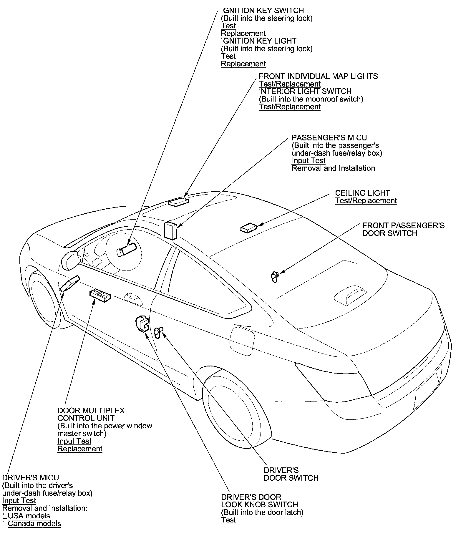 Entry Lights Control System Component Location Index (2-Door)