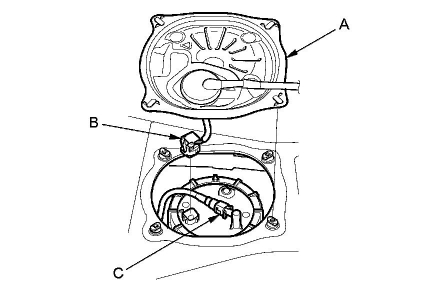 6. Disconnect the quick-connect fitting (C) from the fuel tank unit.