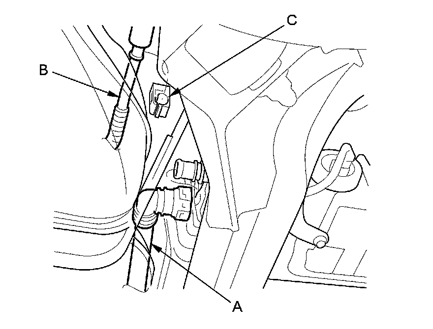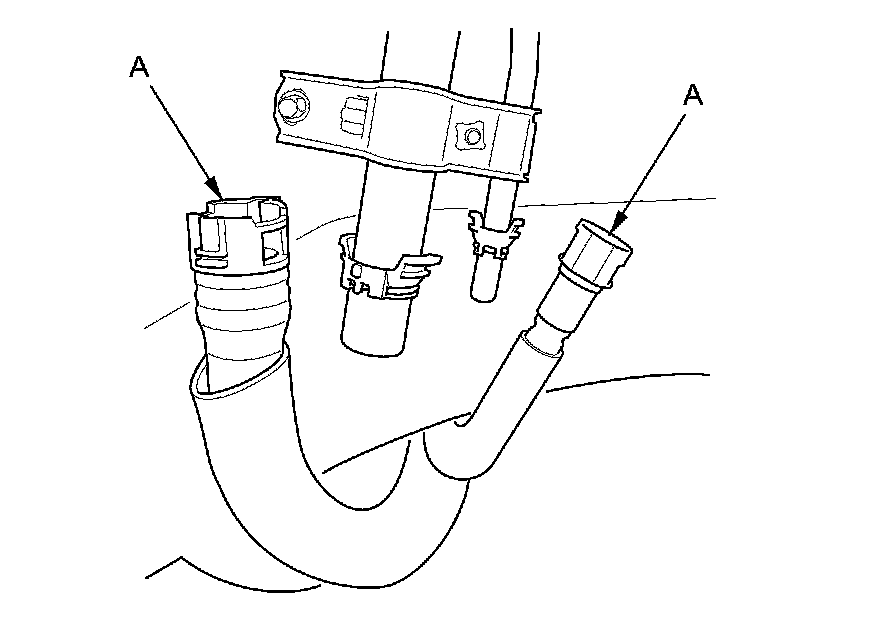 4. Disconnect the quick-connect fittings (A) Fuel Line/Quick-Connect Fitting Removal(and on all models except PZEV, disconnect the fuel fill tube (B) from the fuel fill pipe. Slide back the clamps, then twist the hose as you pull to avoid damaging them).