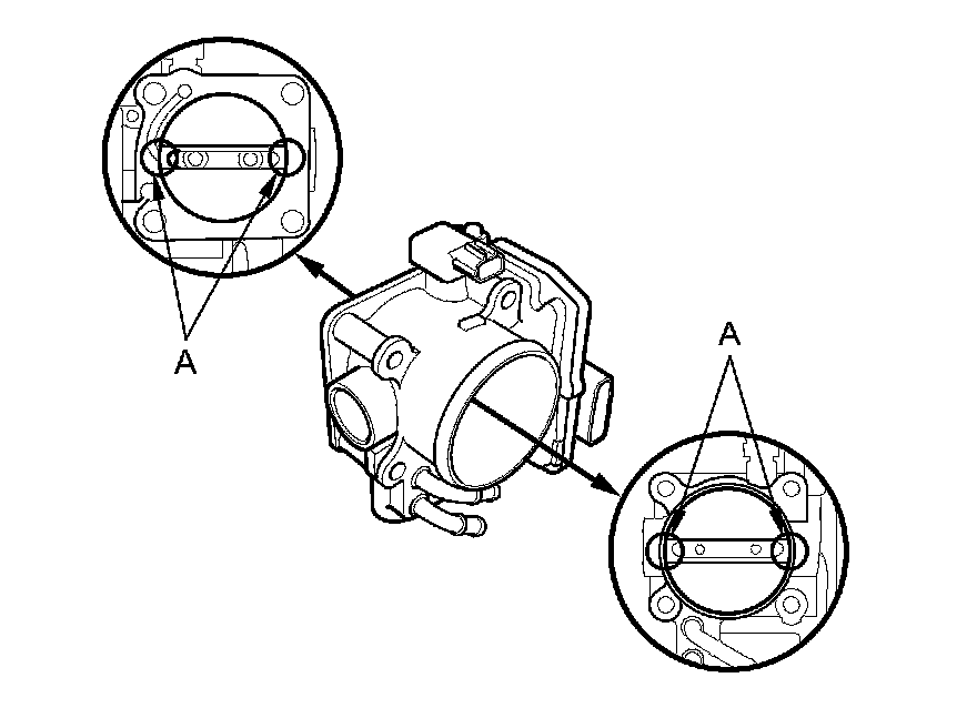 - To avoid removing the molybdenum coating, do not clean the bearing area of the throttle shaft (A).
