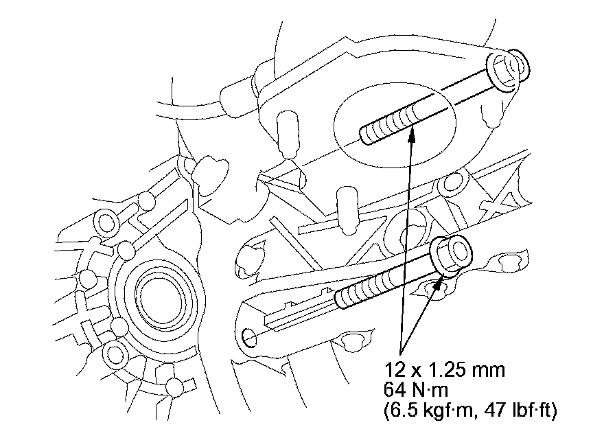14. Install the upper transmission housing mounting bolts.