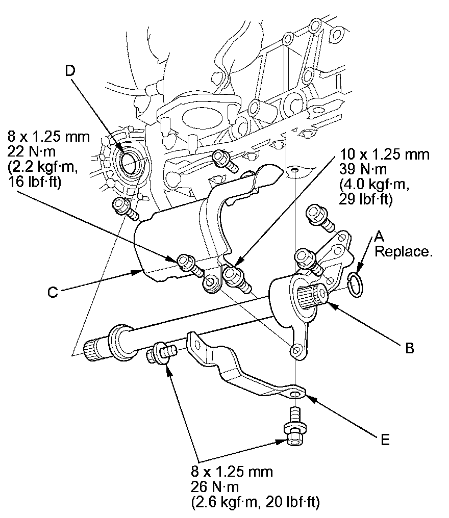 NOTE: Insert the intermediate shaft carefully to prevent, damaging the oil seal (D).