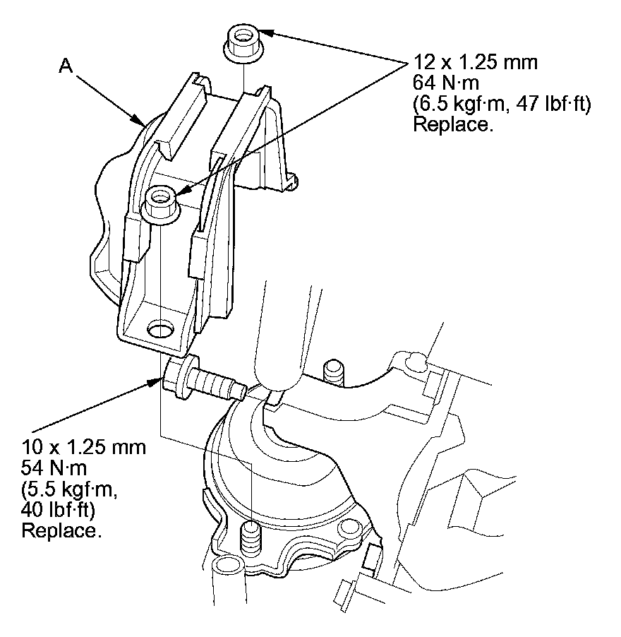 11. Install the front engine mount bracket (A) with new bolts.