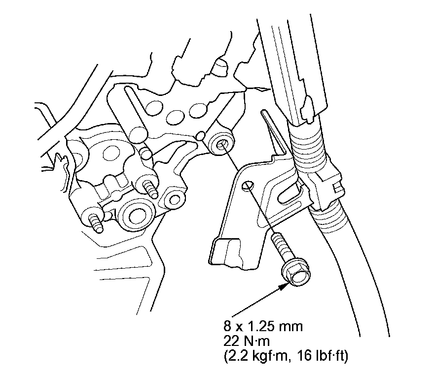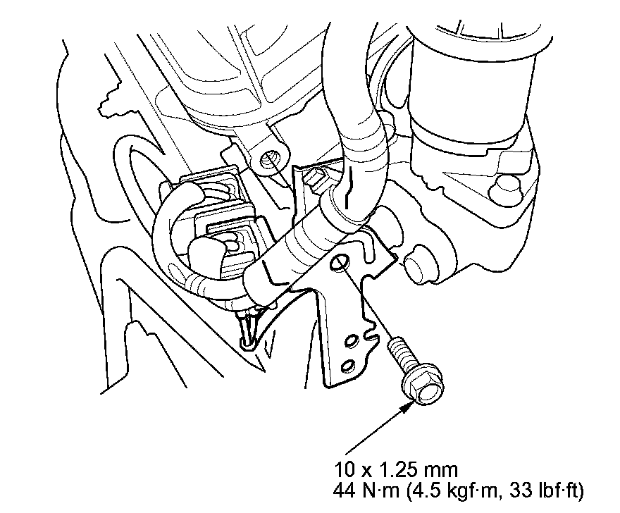 57. Tighten the transmission upper mount bracket bolts and nuts to 59 Nm (6.0 kg-m, 43 lb-ft).