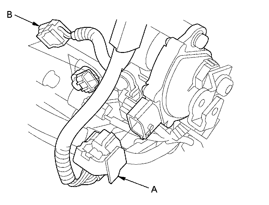 68. Connect the transmission range switch connector (A) and the input shaft (mainshaft) speed sensor connector (B).