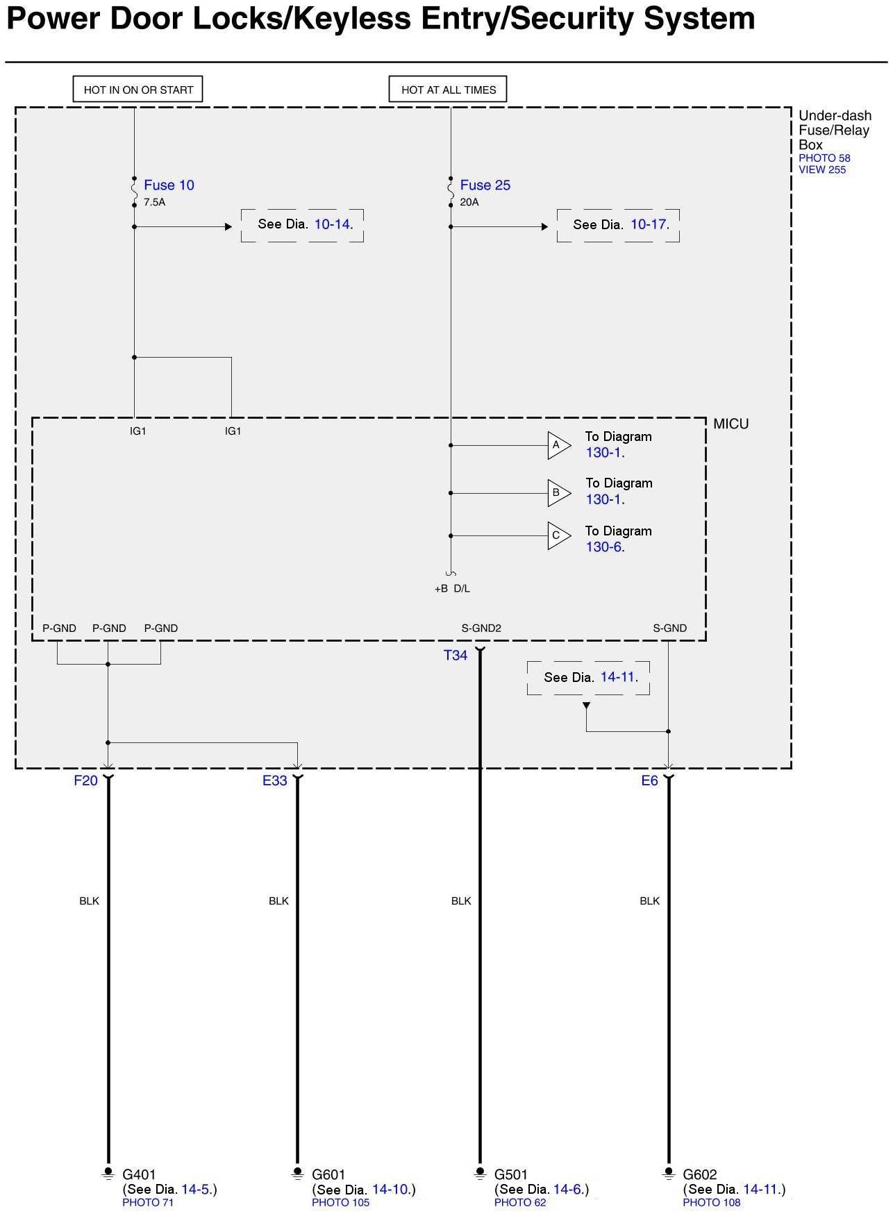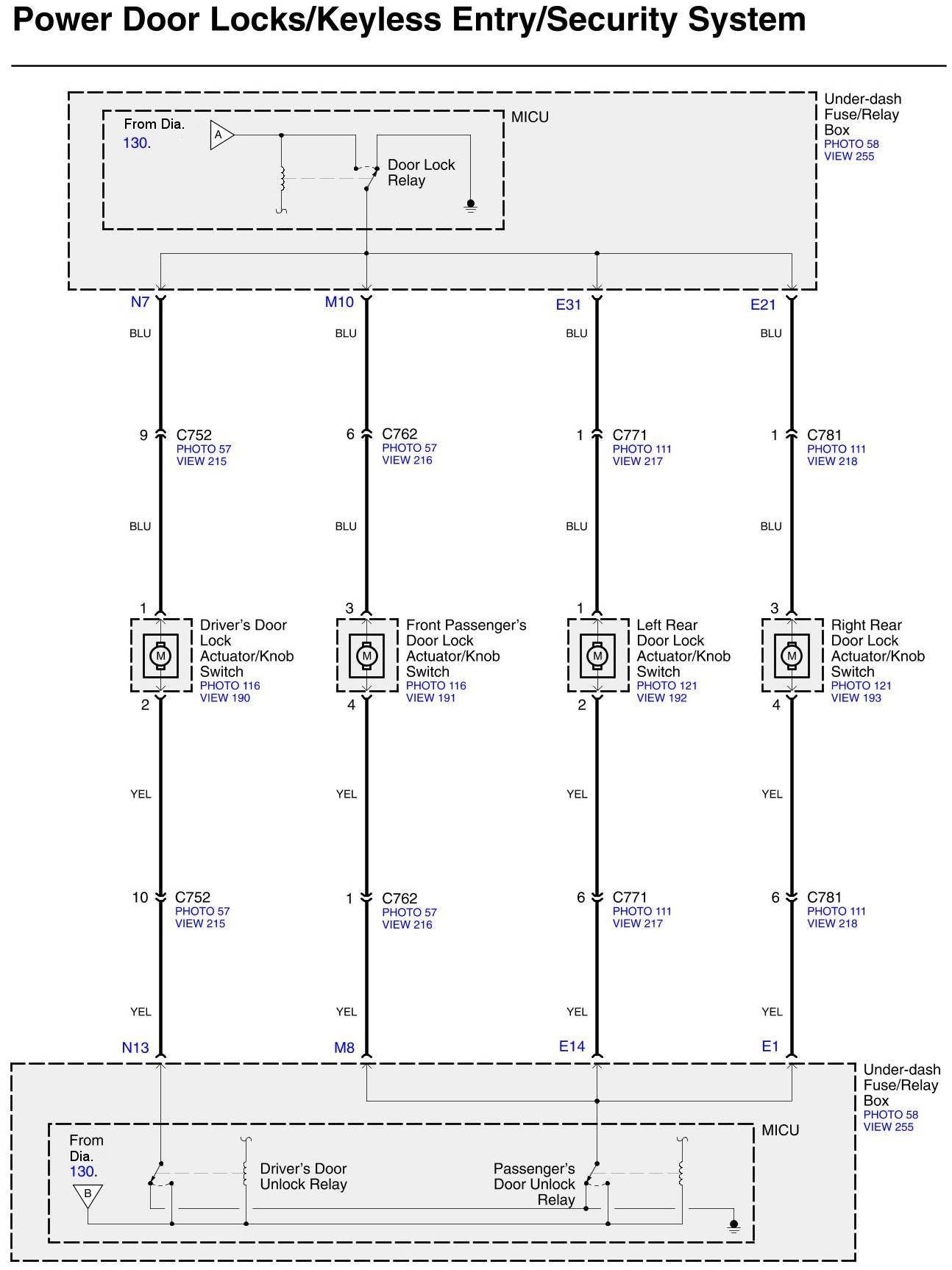 Diagram Set 130 (Power Door Locks/Keyless Entry/Security System)