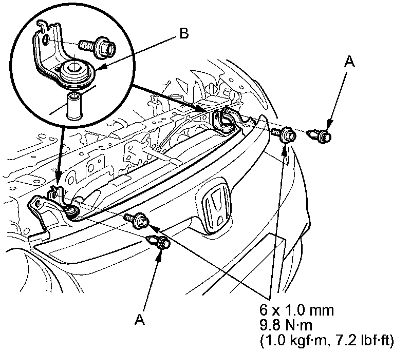 9. Remove the clips (A) and the radiator mount upper bracket/cushion (B).