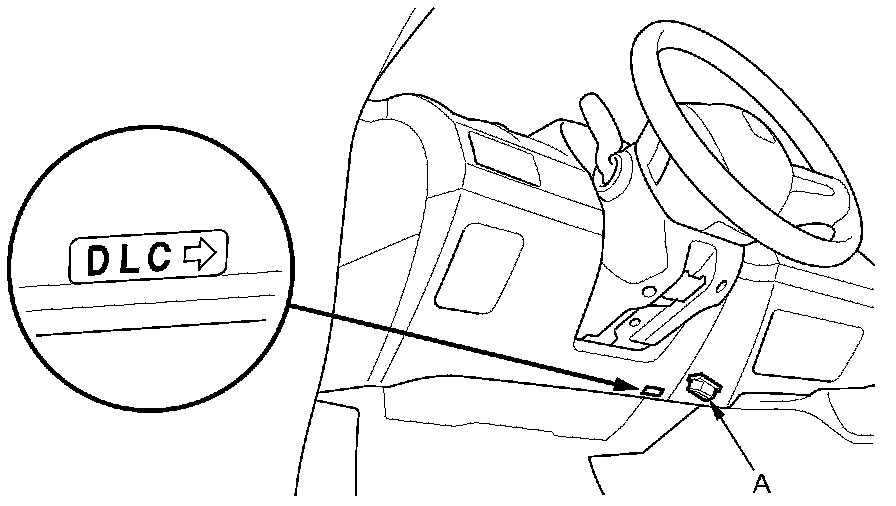 2. Connect the HDS to the data link connector (DLC) (A) located under the driver's side of the dashboard.