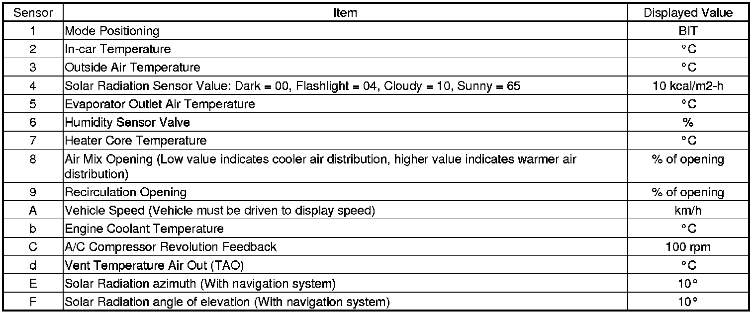 The climate control unit has a mode that displays the sensor inputs it receives. This mode shows you what data the climate control unit is receiving from each of the sensors, one at a time, and it can help you determine if a sensor is faulty.
