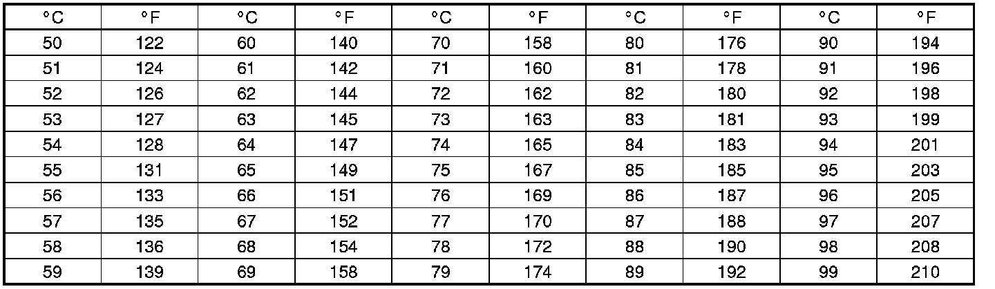 Celsius to Fahrenheit Conversion Table