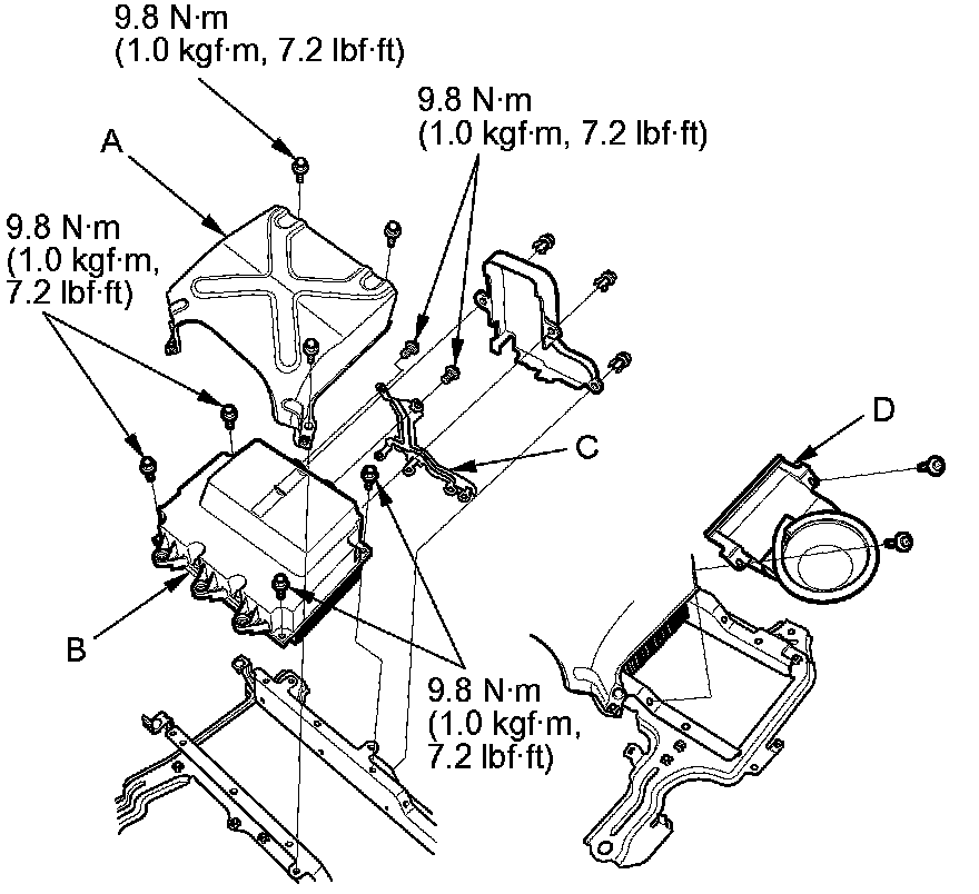 IMA components are located in this area. The IMA is a high-voltage system. You must be familiar with the IMA system before working on or around it. Make sure you have read the IMA service precautions before doing repairs or service High Voltage Safety.