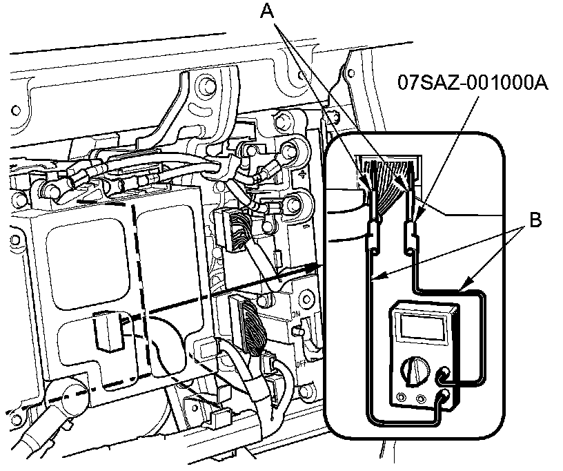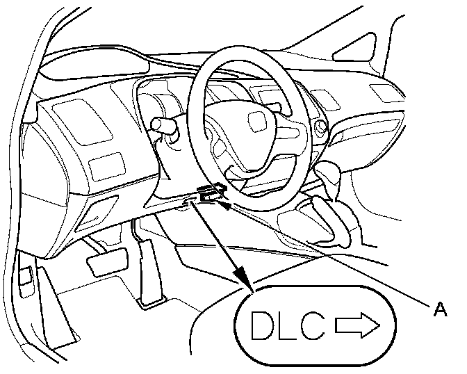 1. Connect the HDS to the data link connector (DLC) (A) located under the driver's side of the dashboard.