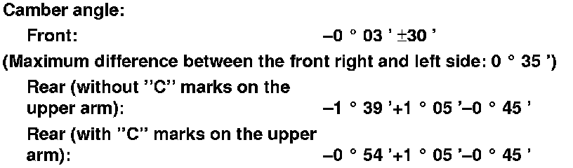 - If the measurement for the front camber is outside the specification, go to front camber adjustment.