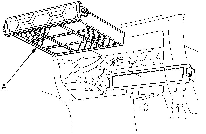 2. Remove the dust and pollen filter assembly (A) from the blower unit.