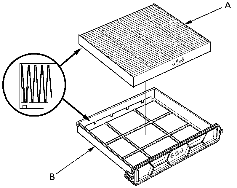 3. Remove the filter (A) from the housing (B), and replace the filter.