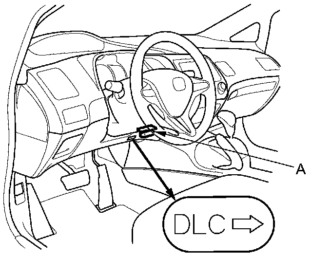 1. Connect the HDS to the data link connector (DLC) (A) located under the driver's side of the dashboard.