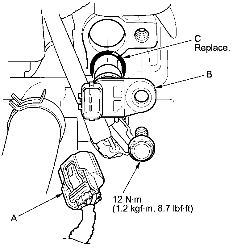 Install the parts in the reverse order of removal with a new O-ring (C).
