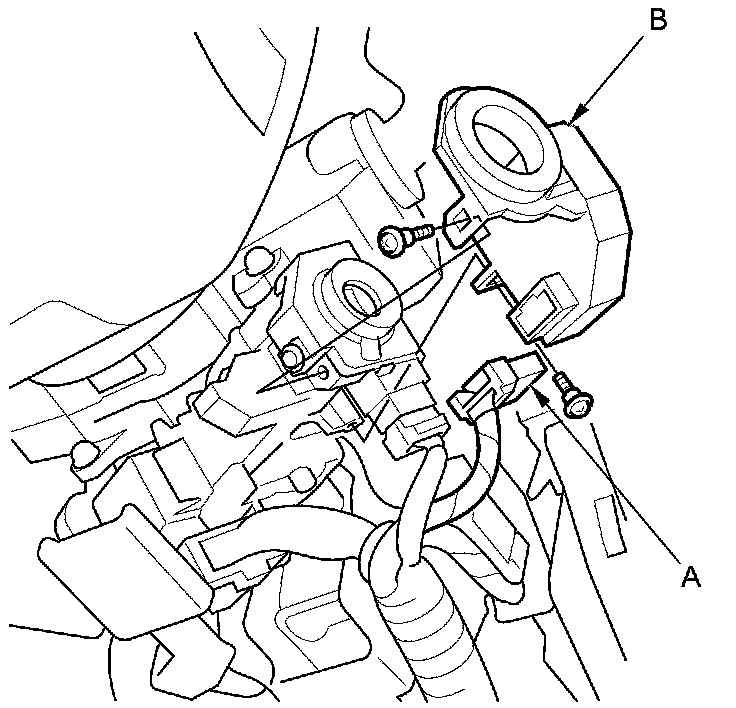 3. Disconnect the 7P connector (A) from the immobilizer-keyless control unit (B).