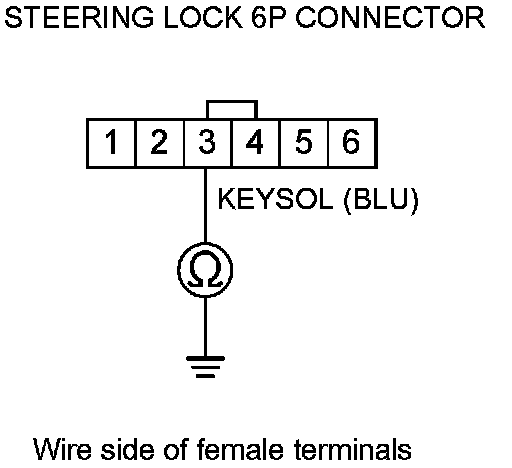 11. Check for continuity between steering lock 6P connector terminal No. 3 and body ground.