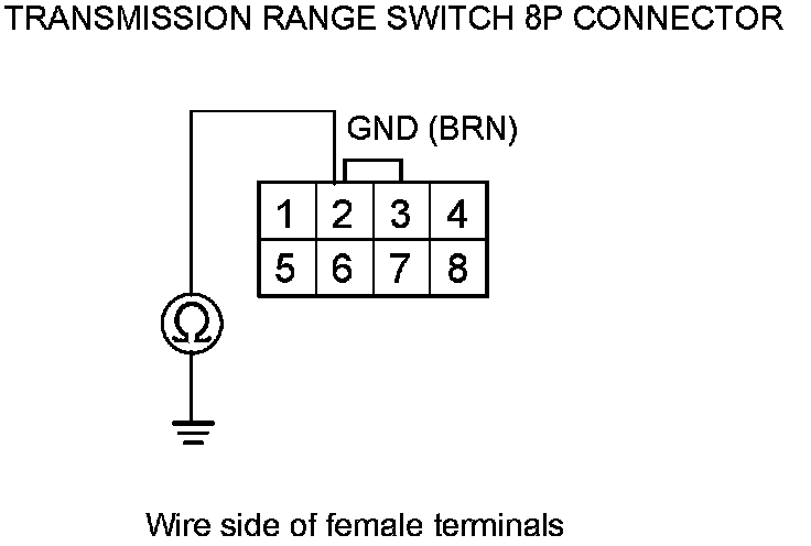 23. Check for continuity between transmission range switch 8P connector terminal No. 2 and body ground.