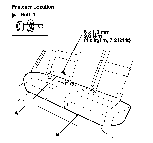 1. Remove the bolt between the seat-back (A) and the seat cushion (B).