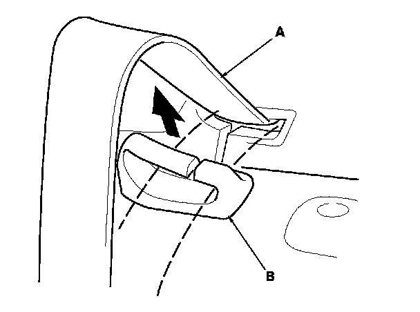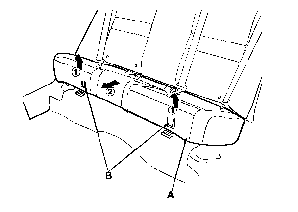 2. Pull up each front edge of the seat cushion (A) to release the hooks (B), then pull out the seat cushion, and remove it.