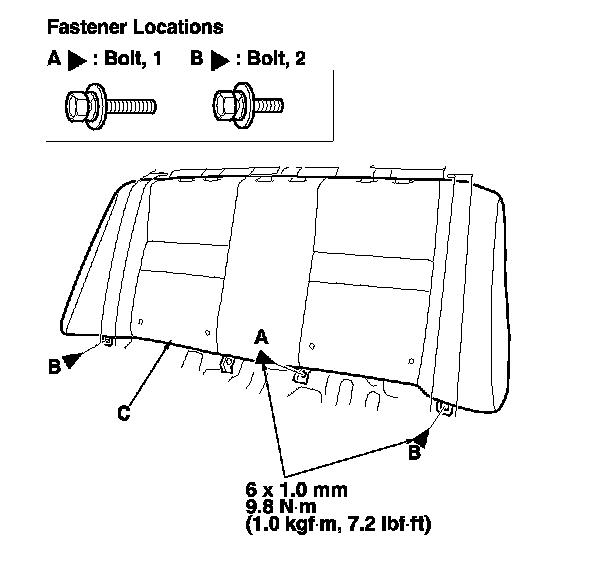 5. Remove the bolts (A, B) securing the seat-back (C).
