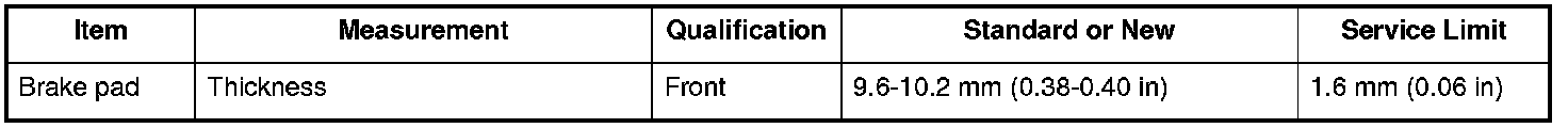 Brake Pad: Specifications