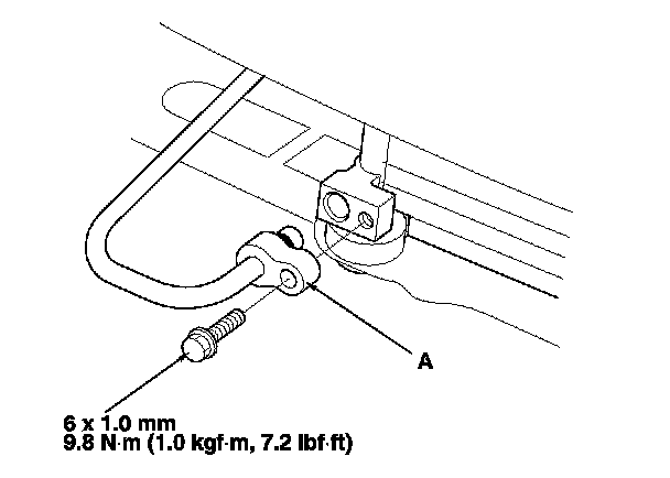 4. Remove the bolt, then disconnect the receiver line (A) from the A/C condenser.