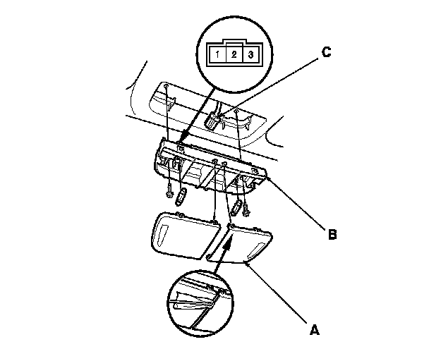 4. Disconnect the 3P connector (C) from the map lights.
