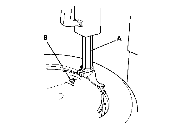 7. Remove and discard the valve stem grommet (A) from the tire pressure sensor (B).